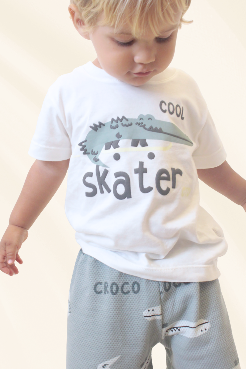 - Camiseta cuello redondo fresca, con estampado de cocodrilo