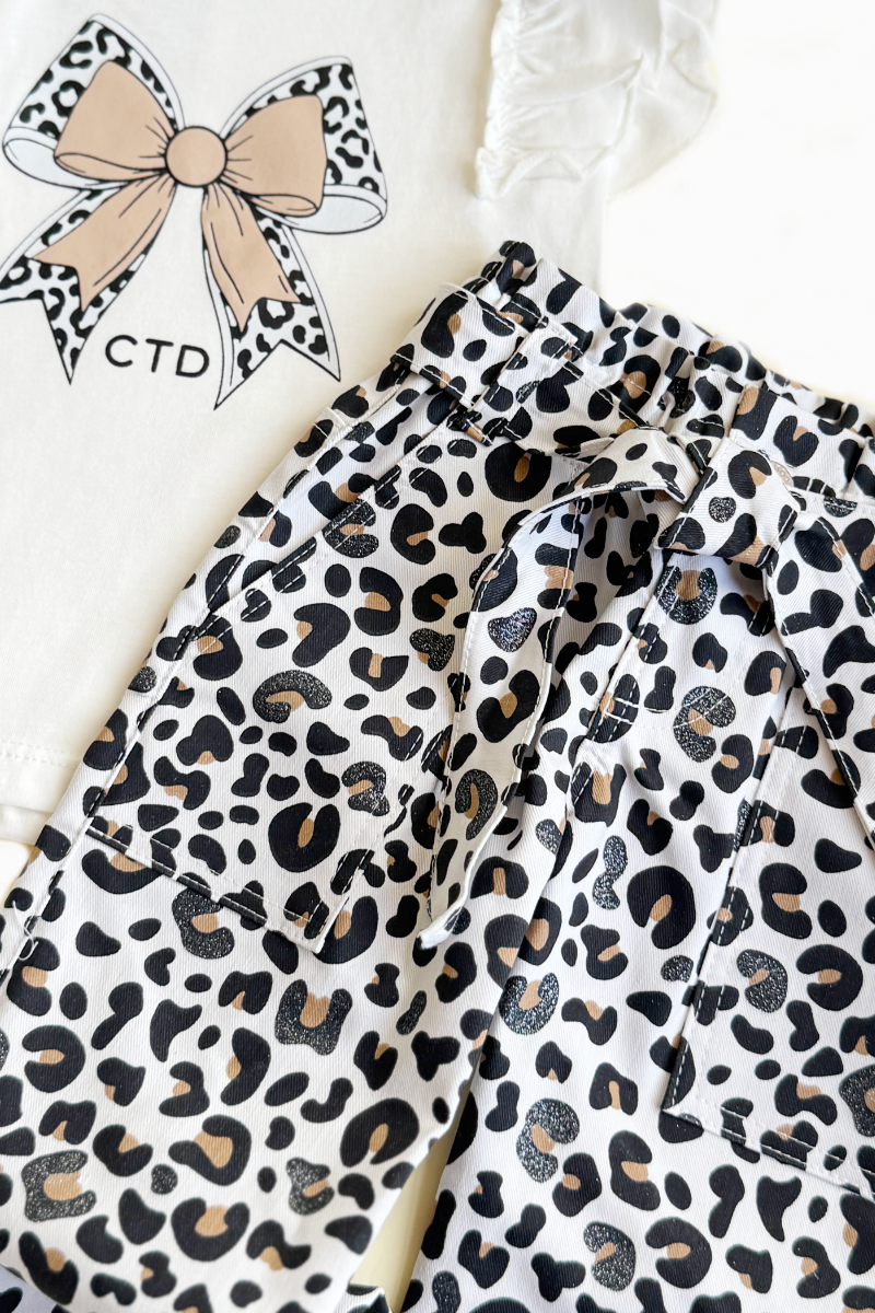 Pantalón: Cintura con resorte , bolsillos funcionales, bota recta y estampado con brillitos