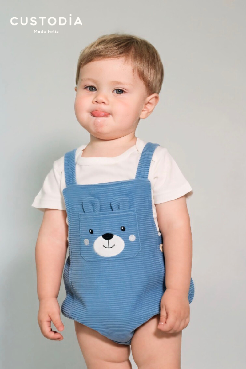- Overall con cargaderas ajustables y osito con detalles sensoriales