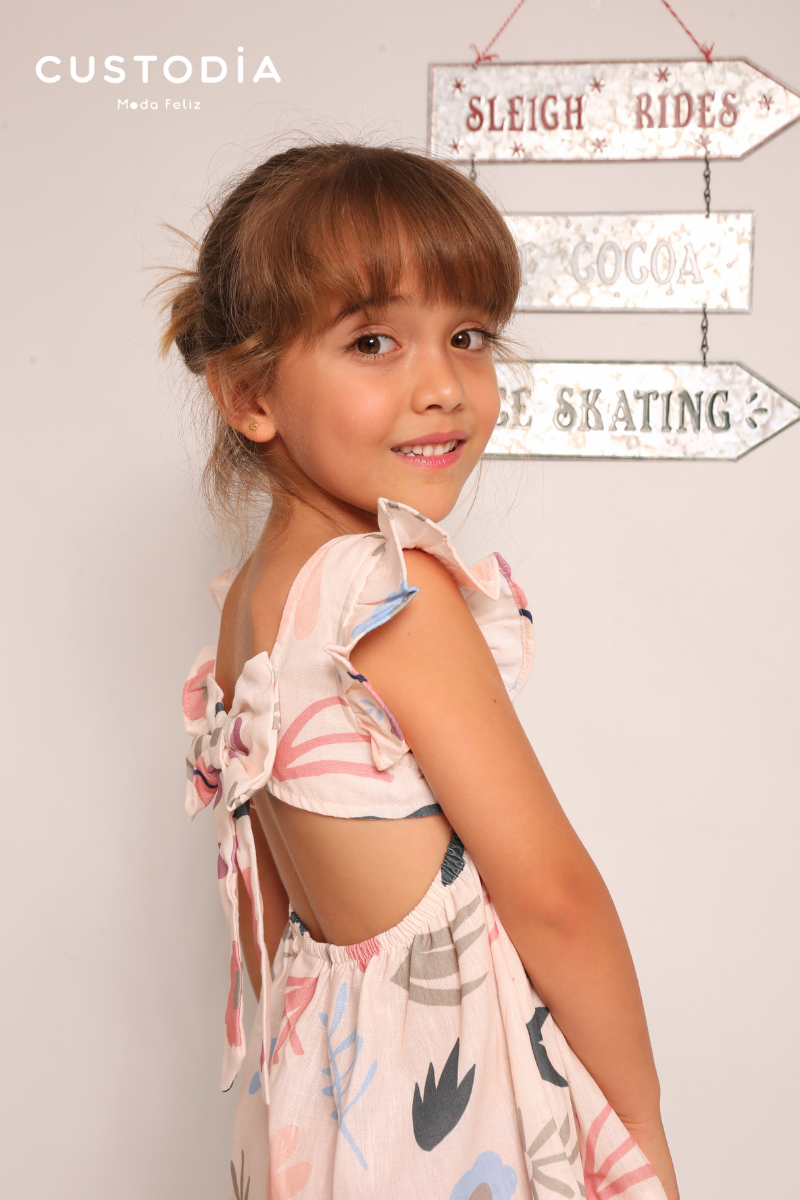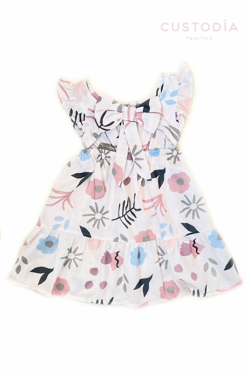 Vestido Flores Moño Espalda